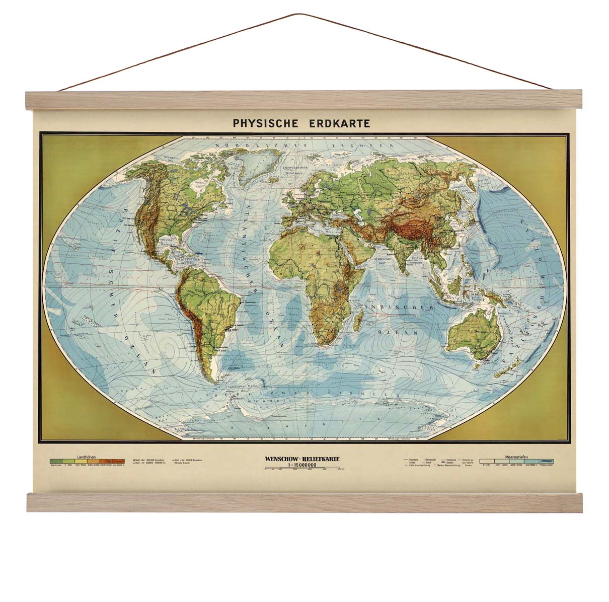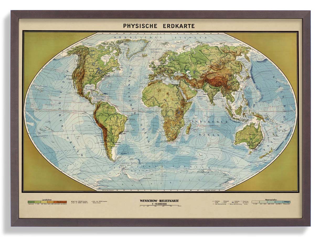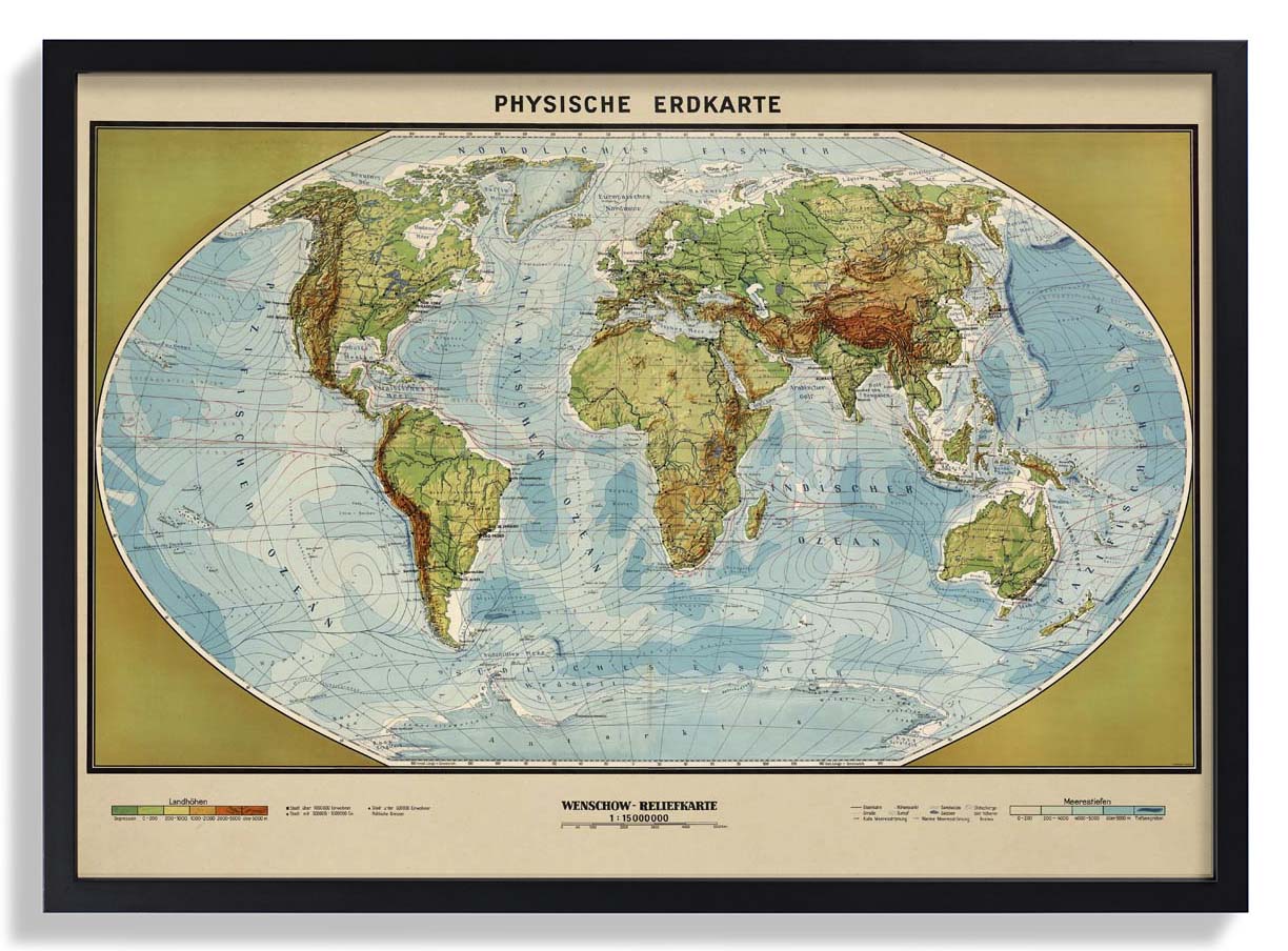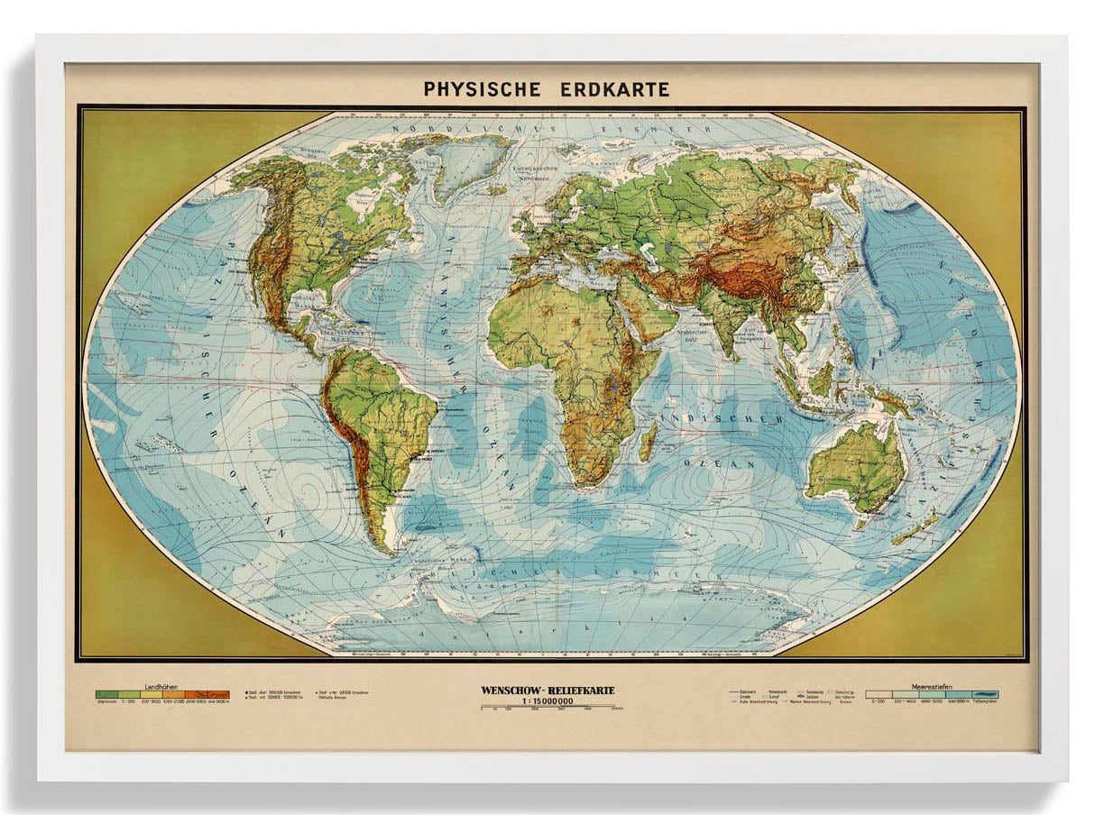 Physikalische Erdkarte Poster perfekt für deine Wohnungseinrichtung.